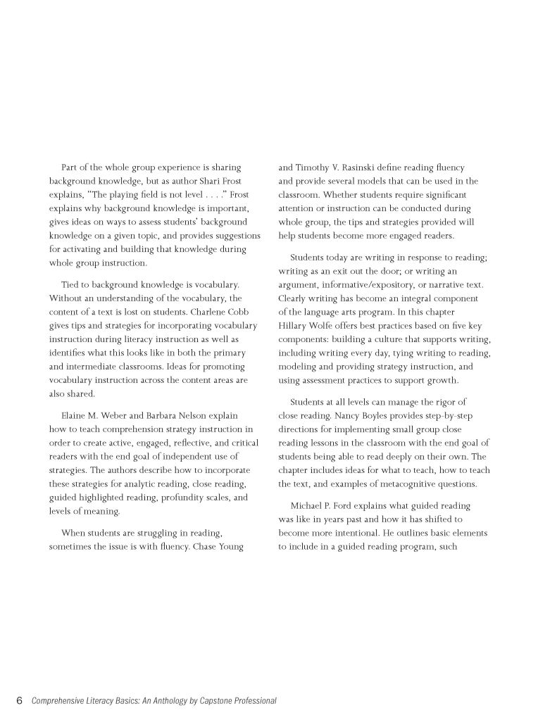 Comprehensive Literacy Basics: An Anthology by Capstone Professional