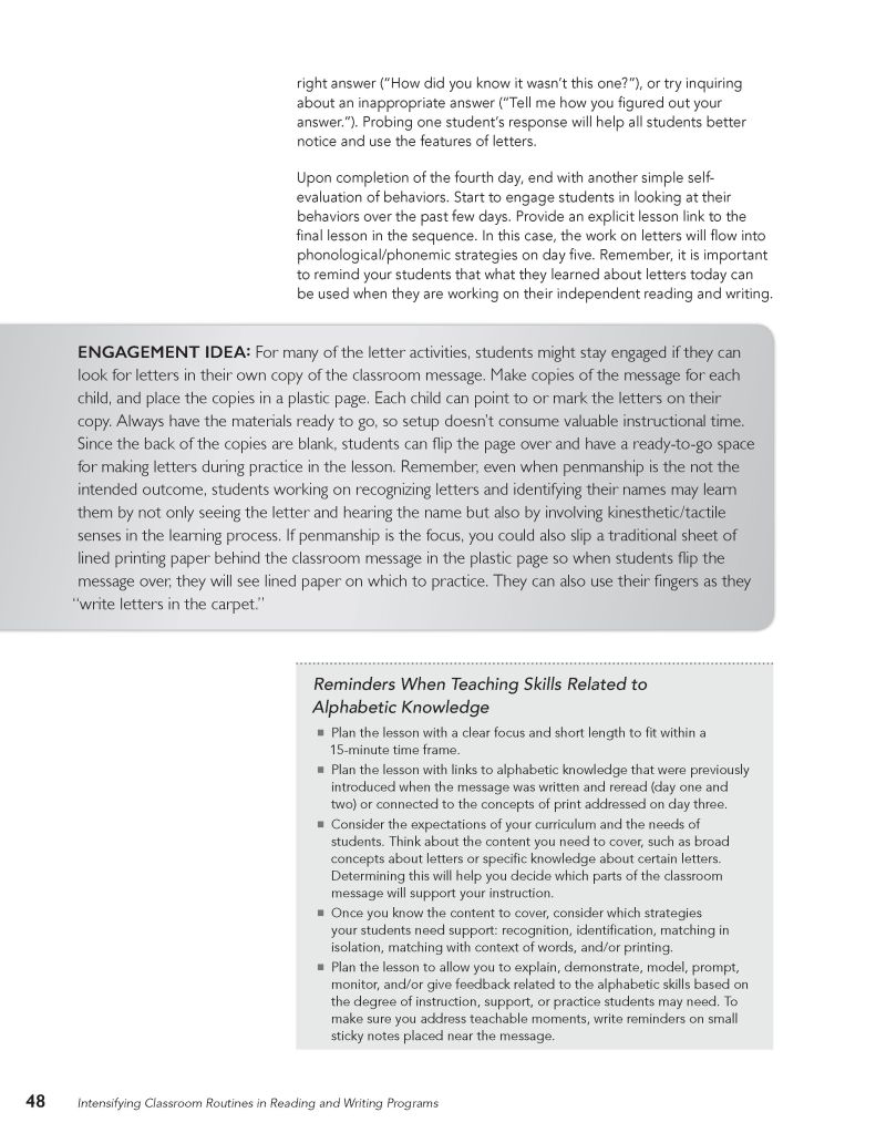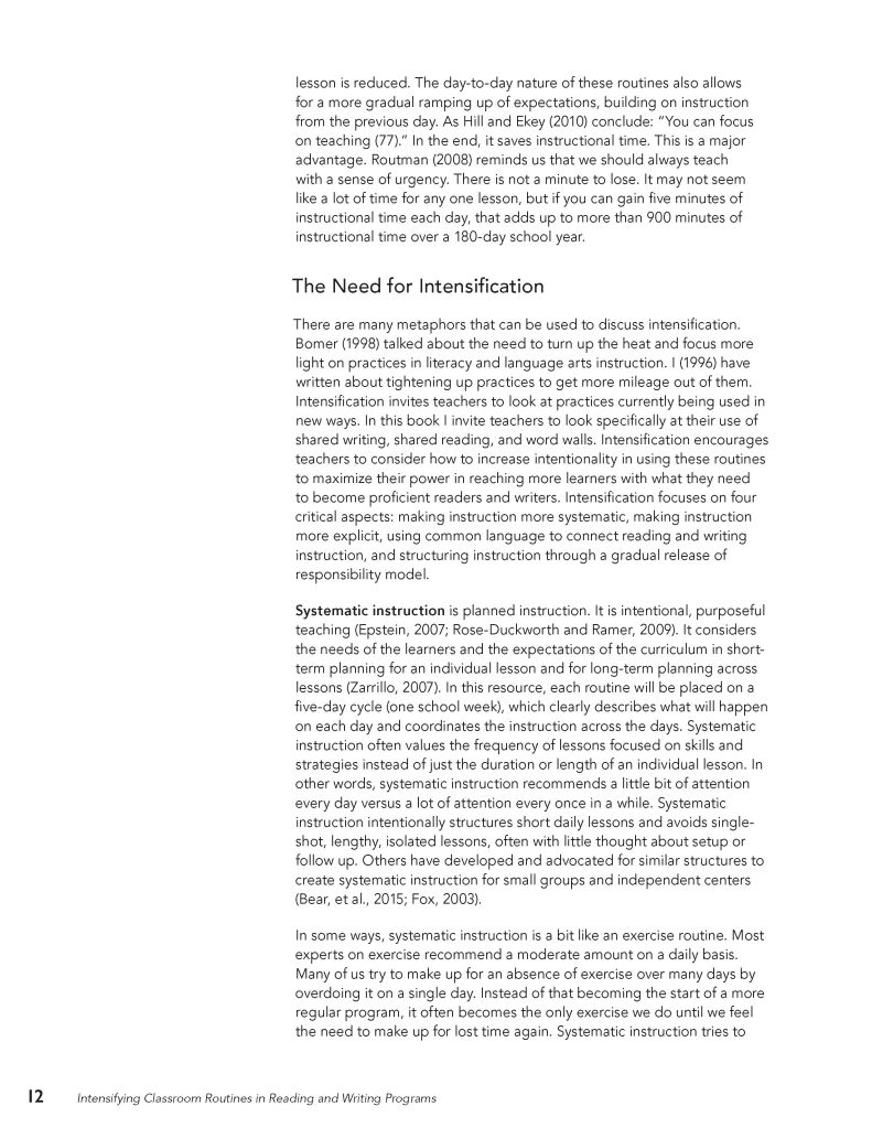 Intensifying Classroom Routines in Reading and Writing Programs